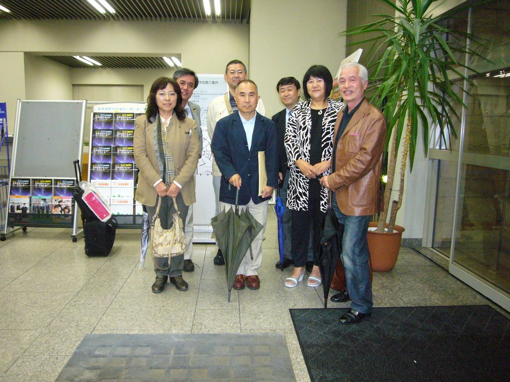 写真:左より愛知大学 小坂先生、椙山女学院大学 塚田先生、星城大学 平岩先生、名古屋大学 木下先生、星野、中日新聞 越守記者、南山大学 藤本先生